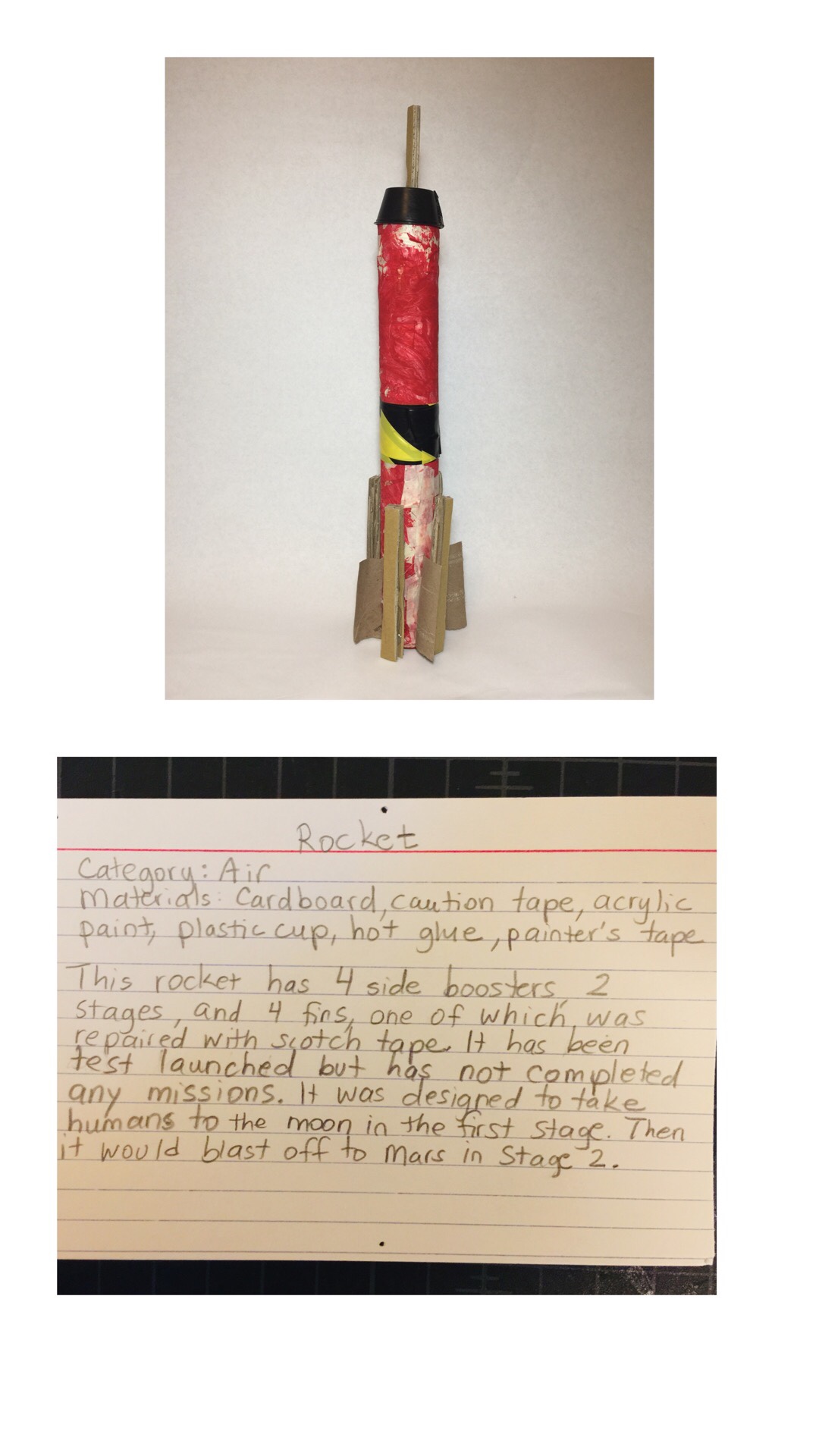 Rocket emmettkwSeptember 14, 2019September 3, 2022Grade School, Model, Rocket Post navigation PreviousNext Share this: Click to share on X (Opens in new window) X Click to share on Facebook (Opens in new window) Facebook Like Loading... Related